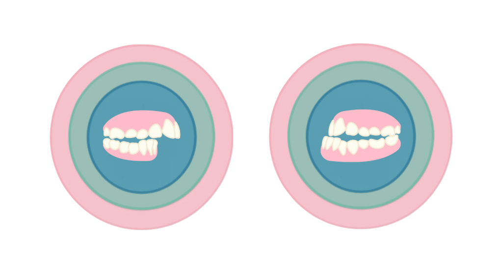 - Crescita mascellare asimmetrica, dove la mandibola inferiore è più sviluppata rispetto alla mascella superiore.