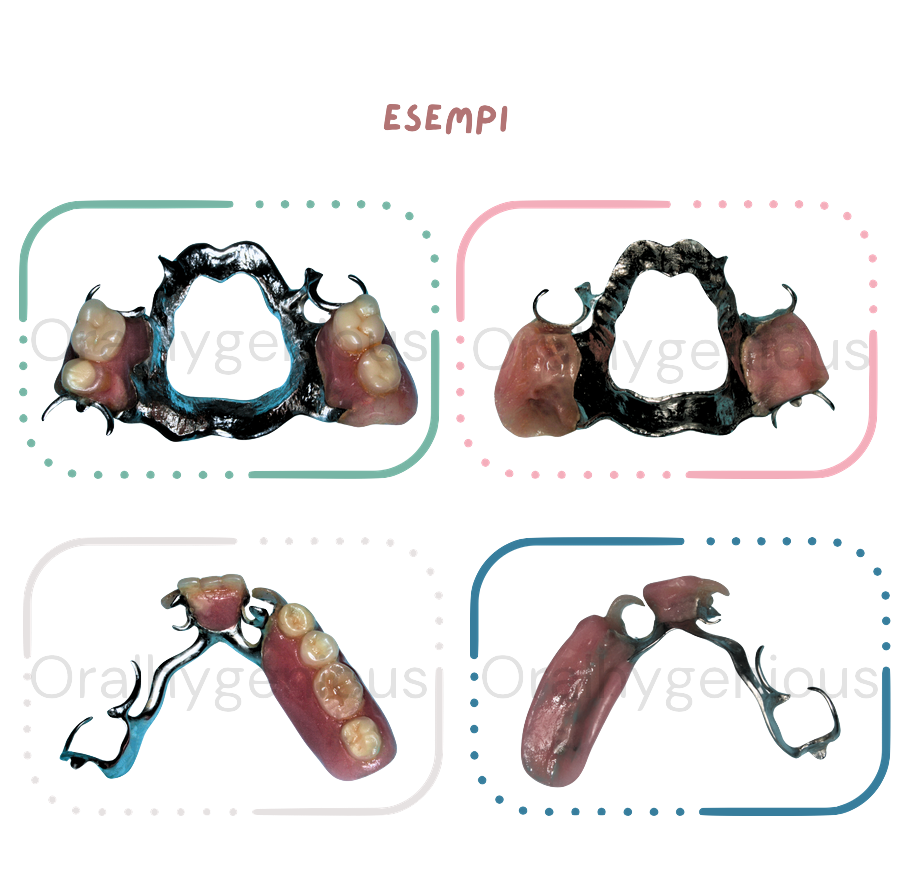 Queste protesi sono completamente removibili, progettate per essere esteticamente gradevoli e funzionali, ma potrebbero richiedere aggiustamenti periodici per garantire una buona stabilità e comfort.