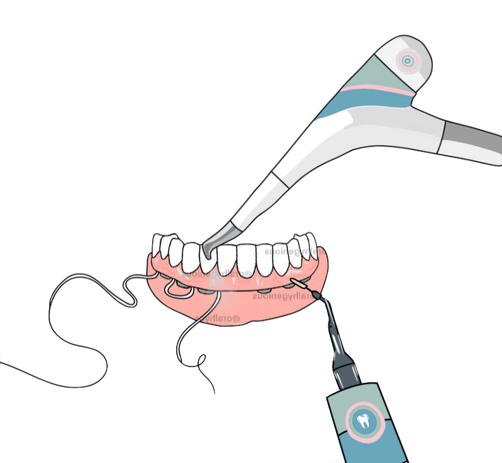 L’igiene professionale delle dentiere è essenziale per mantenere in salute i tessuti orali, prevenire infiammazioni come stomatiti protesiche e garantire una buona durata della protesi stessa. Durante le sedute, l’igienista dentale controlla lo stato della mucosa orale, l’aderenza e la stabilità della protesi, e valuta la presenza di lesioni o aree di iperplasia dovute a traumi da appoggio. La dentiera viene rimossa e detersa accuratamente con strumenti specifici, come spazzolini per protesi, ultrasuoni, paste lucidanti non abrasive e/o Airflow per eliminare placca, tartaro e pigmentazioni. Se necessario, si può consigliare una rieducazione all’igiene domiciliare, con l’uso quotidiano di spazzolini per protesi, detergenti specifici (pastiglie effervescenti) e l’abitudine a rimuovere la dentiera durante la notte per permettere alla mucosa di “respirare”.